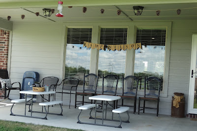 One evening in the summer, I was on Pinterest and all these cute pins for camping themed parties kept coming up. I thought at the time that I would like to make "camping" or "outdoors" our next birthday party theme. I mean, how fun would that be?!? The more I saw these camping themed parties, the more I thought that maybe we should throw a summer party with that theme. We had been wanting to have some families we don't know well yet over for a gathering anyhow. And then I thought . . . why don't we do a back-to-school camping theme party?!?