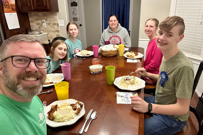 For dinner that evening, Chris and I made chicken fried steak, mashed potatoes, cream corn, rolls, and cream gravy. This is a meal that all the kids really enjoy, but especially Brenson. He was thrilled with a relaxing afternoon of gaming and his favorite supper!