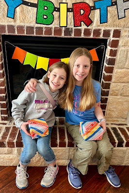 Brooke and Brecklyn's birthday was on a Monday this year and began with their first track & field practice of the 2025 season. Chris, Bri, and Bren were already at their earlier practice when the girls got up, so no special breakfast this year. They were excited to see how we decorated their door!